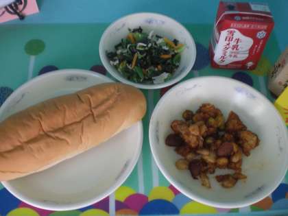 食べ終わった子どもたちから,今日のケチャップ味の魚や豆おいしかったよ。とたくさん声がかかったり,集会でもおいしく食べられた子たちが手を挙げて教えてくれてとてもうれしかったです。