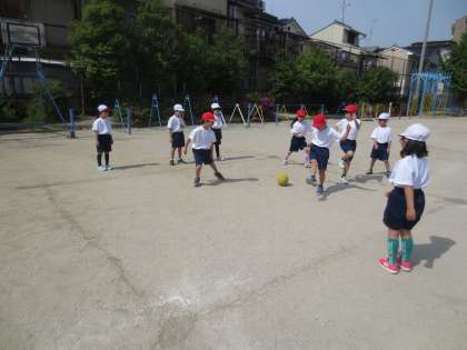 体育の時間にころがしドッヂボールをしました。
