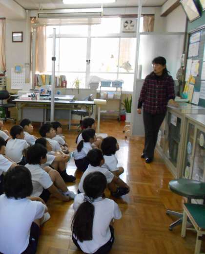 さすが3年生。養護教諭の荒木先生の話を,しっかり聞いています。