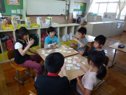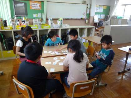 国語の学習でカードを使って文づくりをしました。