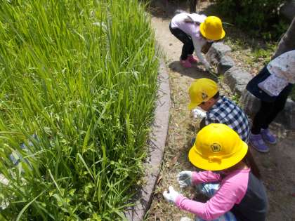 ごみゼロの日の活動を行いました。1年生は石拾いや,草抜きをしました。どの子も黙々と,自分の仕事をこなしていました。中庭と運動場がぴかぴかになって,気持ちが良いですね!