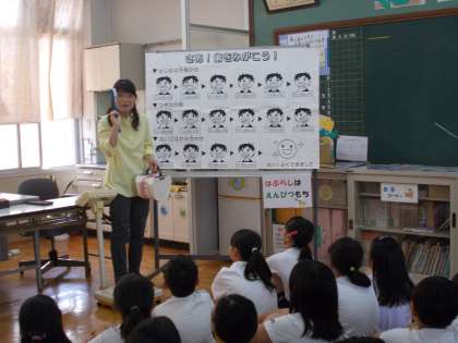 体重測定と頭髪検査がありました。水泳学習を前に,頭ジラミが頭に付着した場合,どうなっていくのか,付着した場合の処置の仕方や,予防についてのお話を,養護の先生にしてもらいました。また,17日からむし歯予防週間となりますので,歯の正しいみがき方や歯みがきをするときの注意などを再確認しました。