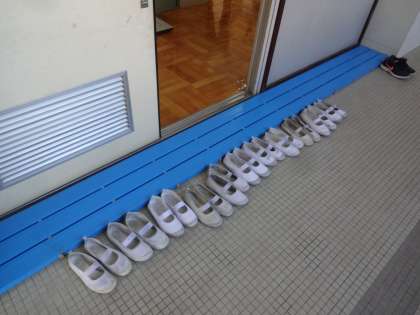 保健室の前につくときれいに上靴を並べる子どもたち!さすがです。