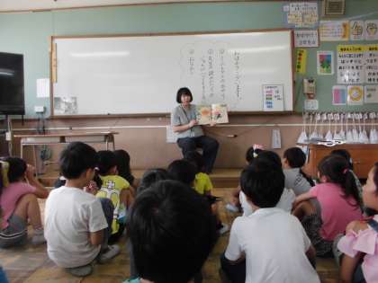 朝読書の時間に,担任の先生ではない先生に読みかたりをしてもらいました。誰が来てくださるのかな,どんなお話を読んでもらえるのかなといった,いつもと違う緊張感をもって朝読を迎えました。