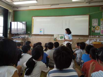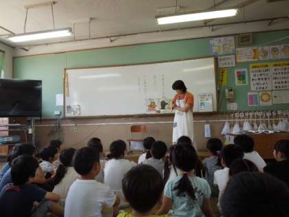 先週から今週にかけて,うめのこさんで「6月の読みかたり」をしていただきました。今週は「あじさい読書週間」でもあるので,5・6年生には,英語のお話の本もよんでいただきました。ありがとうございます。