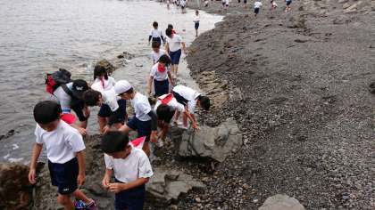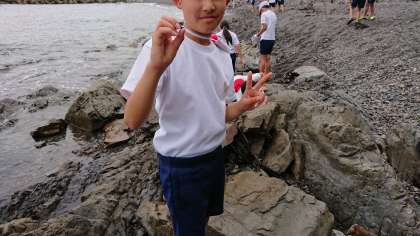 明日に予定していた磯観察を今日に繰り上げて行いました。カニがいた!とかヤドカリがいた!とか。海の生き物に興味津々です。