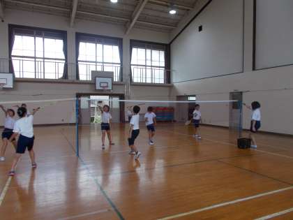 夏休みに入り,バドミントン部の1回目の練習でした。今日は基礎練習(素振りなど)・サーブ練習・スコアシートの記入・試合を行いました。サーブが入らないと,その分の得点をすべて相手にあげてしまうことになる…。ということでサーブの向上を目指し,10分間もくもく練習する時間もありました。5年生はサーブもずいぶん入るようになってきました。6年生はスマッシュが決まっている子が多く,5年生に良い刺激を与えてくれました。次は8月1日(木),2日(金)9時から練習があります。水分をとりながら,安全に楽しくバドミントンの練習をしましょう。