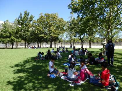 ここでお弁当タイムです。お天気がとてもよく,心地よい秋風の吹く中で,お弁当を食べました。お互いにお弁当を見せ合いながら,嬉しそうにおいしそうに食べていました。早朝よりご準備ありがとうございました。
