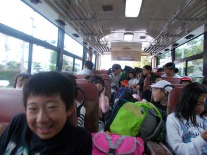 バスの中は,大変にぎやかです。これからの山の家での活動に,胸をわくわくさせている様子があふれています。