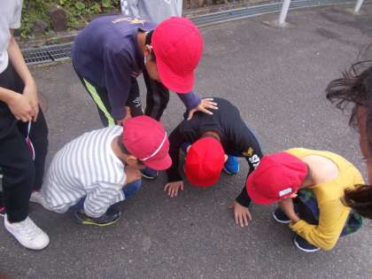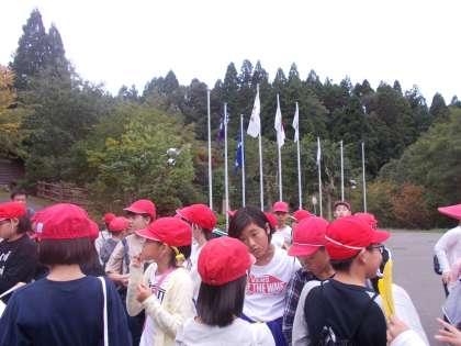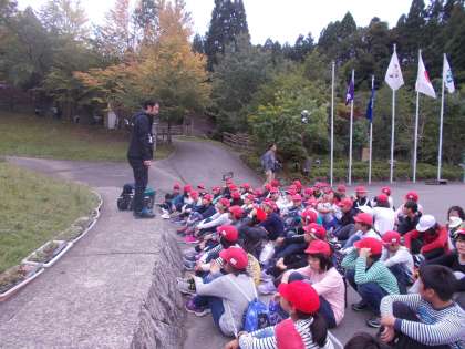 誰一人,車酔いすることなく「山の家」に到着しました。さっそく,入所式を行いました。きちんとした姿勢で,山の家の主事の先生のお話をしっかりと聞くことができていました。やる気に満ちています。・・・地面に何かあったのかな?
