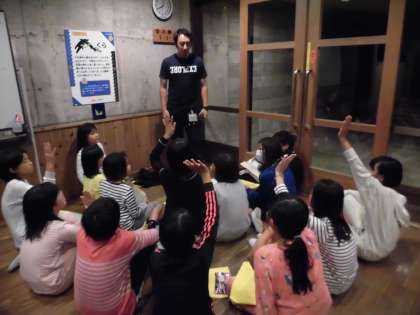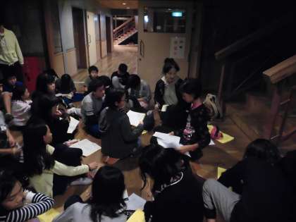 係ごとの振り返りの様子です。今日のめあて「楽しむ」を存分に堪能した子どもたちが,生き生きと発言していました。明日,元気に山登りをするために,今日は少しでも早く眠りにつけますように。