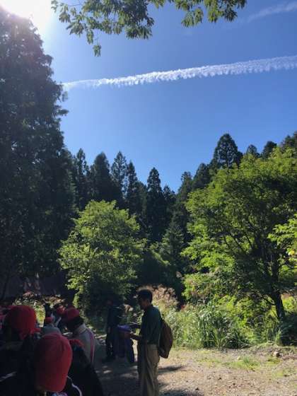 すがすがしい空気が流れています。突き抜けるような青空。友だちと励まし合いながら,みんながんばっています。