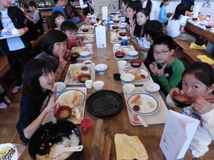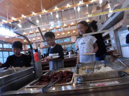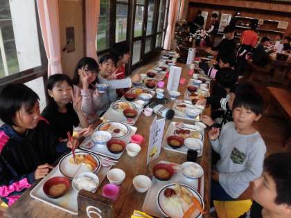 山に登って,おなかがすいていたのでしょう。二度,三度とおかずを取りに行く子どもたちでした。
