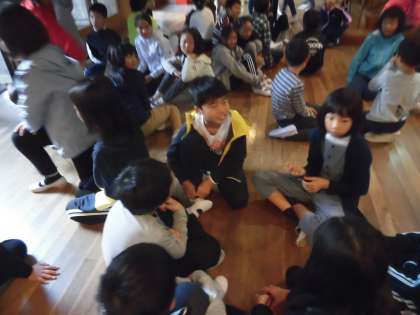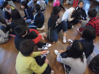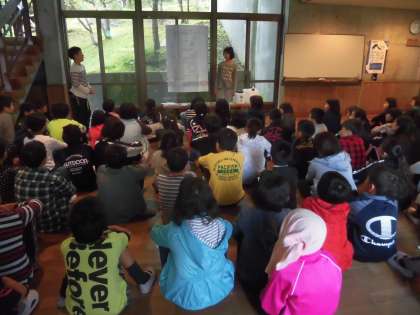 「朝のつどい」は,宿泊棟のミーティングルームで行いました。今日のめあて「協力」して活動することをみんなで確認しました。