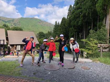 グループでディスクをゴールに入れながら,得点を重ねていきます。効率よく回っていく方法を考え,一人一人ディスクを投げるのですが,なかなかうまく入りません・・・。