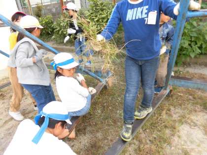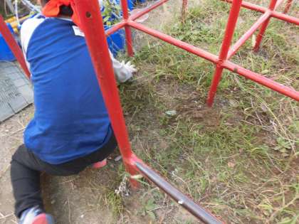 夏の間にたくさんの雑草が生えていて,抜くにも一苦労です。みんなで力を合わせてきれいにしました。