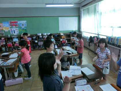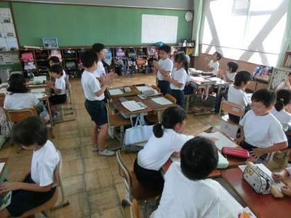 発表するときには,緊張して少しずれそうになっても,目と目で合図したり,小さくかけ声をかけたりして,リズムの流れを意識しながら頑張っていました。