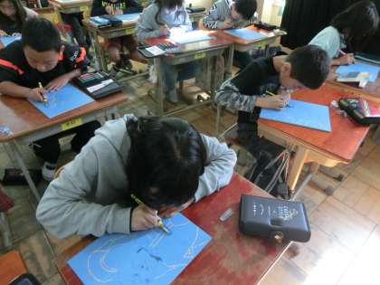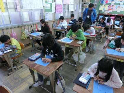 子どもたちは,「かたくて難しい。」「深く彫りすぎてしまう。」と感想を言いながらも,彫るときには静かに集中して彫っていました。