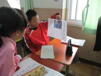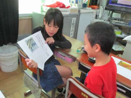 「アップとルーズで伝えよう」の学習のまとめとして,自分が選んだ写真を使って,友達と伝え合いを行いました。