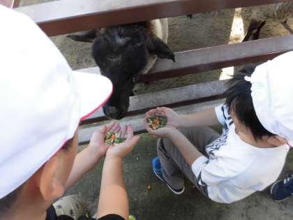 やぎのえさやりでは,近くでやぎを見て「かわいい。」と感じたり,手のひらを近づけてもぐもぐ食べてくれて「くすぐったい。」と感じたりして,体験して感じることが多かったです。