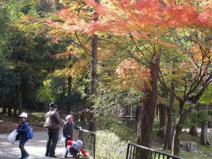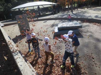 公園でも,枯葉を紙吹雪のようにまいて遊ぶ子達も。