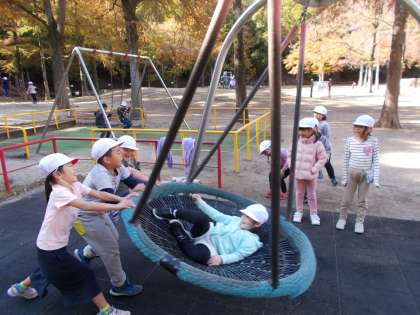 遊具の中でも人気だったのが複数で乗れるブランコでした。順番に並んで,次の人が押して10回数えるというルールもしっかり守り,仲良く遊べましたね。