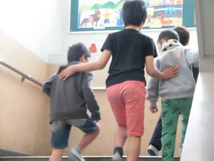 5年生のお兄さん・お姉さんと一緒に手をつないで校内の検査会場を回りました。