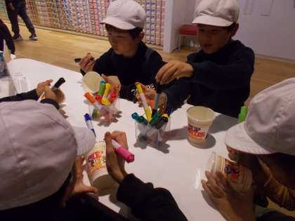 カップヌードルミュージアムでは,自分だけのオリジナルヌードルを作りました。容器に絵を書いたり,味や具を自分で選択をし,大満足でした。「今日食べる!」という子もいれば,「なんだか食べるのがもったいないなあ。」という子もいました。