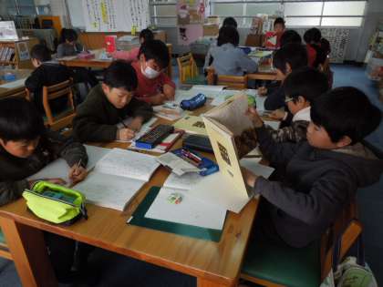 それぞれが見つけた民話・昔話で紹介文を書きます。あらすじ,おもしろいと思うところ,その理由は,必ず入れています。発表会の時,同じ民話・昔話を読んだ人との感じ方の違いを知るために,紹介文を書く民話・昔話は,8種類の中から選びました。