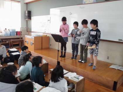 発表では,少し緊張していましたが,みんなで目を合わせたり,リズムを刻んだりして演奏していました。