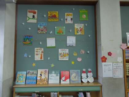 「うめの花・雪・ほんの紹介」が基調となっているほんのもりです。是非,見に来てください。