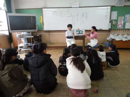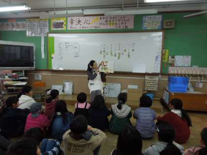 14日は,3年生です。職員打ち合わせの為,どのクラスも担任不在です。でも,どのクラスもしっかりとお話の中に入り込んでいます。