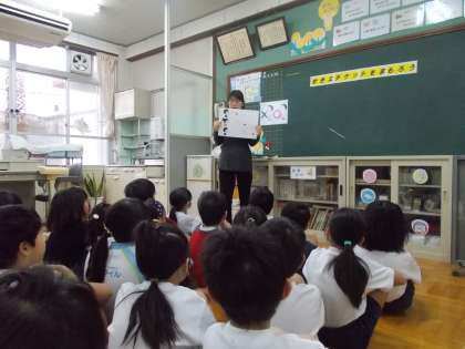 1年生最後の身体計測を行いました。保健室でこうして荒木先生と学習をするのもこれでおしまいです。今回は咳エチケットのことをお話してもらいました。咳やくしゃみを腕で押さえないとこんなにばい菌が飛んでしまうんだよということを聞いて,子どもたちは驚いた様子でした。インフルエンザも増えてくる時期です。自分で予防できるように,気をつけていきたいと思います。