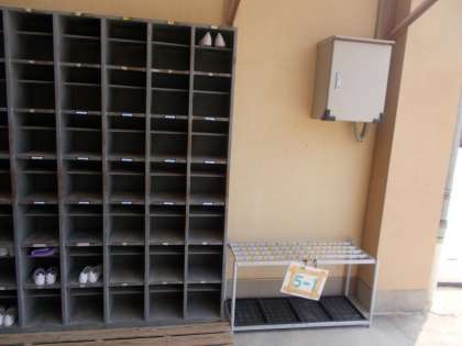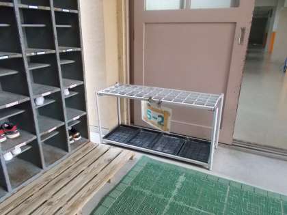 傘立ても,靴箱のすぐそばにあります。自分の名簿番号の所に入れてくださいね。
