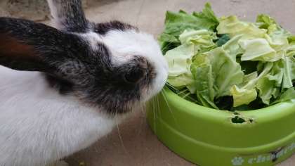 キャベツをむしゃむしゃむしゃ。おいしそうに食べるハッピー♪