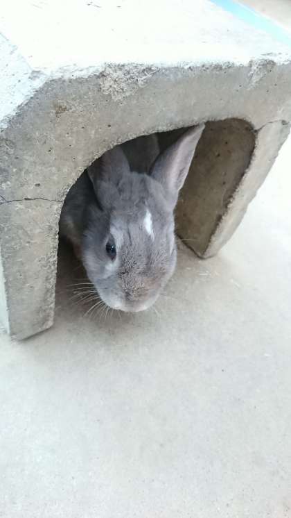 ちょこんと足をあげ,トンネルから顔をひょっこり出したラッキー♪
