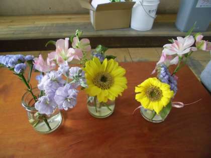 学きゅうびらきの日,それぞれの教室でお花をかざっていました。知っていますか?これは,1年生の入学しきの日に,体育館でかざられていたお花で,おすそ分けしてもらったものなのです♪「ピンクを入れて,教室に入ったみんなにも春らしさをかんじてほしいなあ。」「き色い花を入れて明るい気もちになってほしいなあ。」とたんにんの先生でえらんで,お花を生けました。どれがどの先生が生けたものか分かるかな?