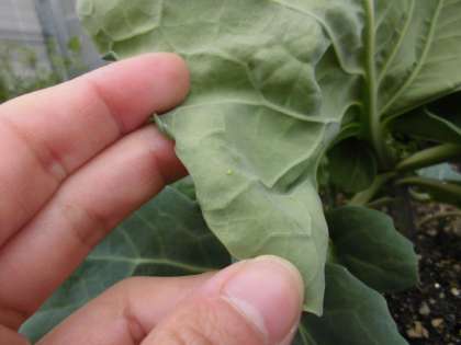 ちかよってみると…キャベツのはのうらに,きいろい小さなたまごが…。何のたまごなのだろう…?どうしてはのうらにたまごがついているんだろう…?ふしぎがいっぱいです!