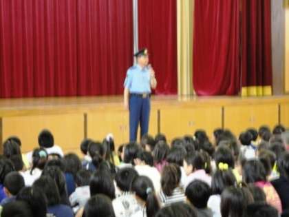 避難訓練をしました。今日は,学校の中に不審者が侵入してきた時,どうすればいいのか・・・。訓練の後,右京警察署の方にお話していただきました。