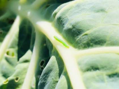 青虫くんのようすを見に,キャベツ畑にむかうと…お休み中に生まれたのか小さな小さな青虫がたくさんいました。キャベツのはをめくると,あっちにも!こっちにも!青虫大ファミリーですね。この家族がどのようにして成長していくか楽しみです。