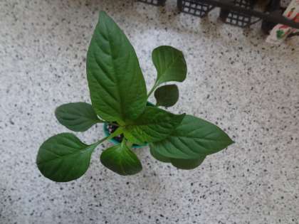 上から見た所です。お日様が十分当たるように,上の葉と重ならないようこんなに開いているのです。さてなんの植物でしょう。これからむくのきで栽培するための苗ですよ。去年はたくさん収穫できました。