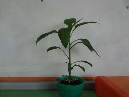 答えはピーマンの苗でした。真ん中のはミニトマトですね。ぎざぎざの葉っぱはオクラです。夏に収穫できる野菜たちです。