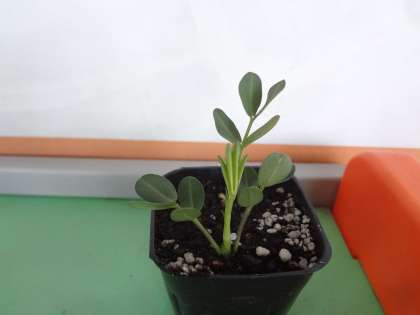 ラッカセイの苗です。小さな種はニンジンです。冬にはうまくいかなかったけれど夏ニンジンでリベンジです。