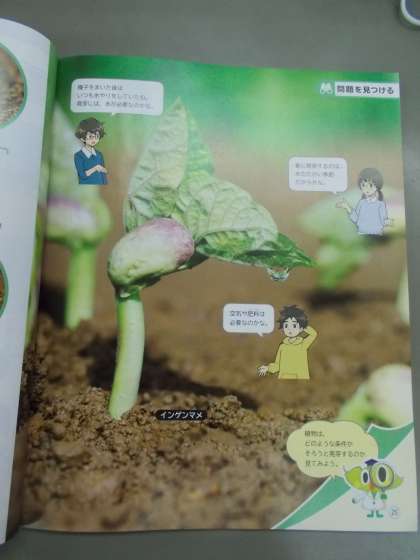 前回見せた種ですが…答えは「インゲンマメ」でした。学校が始まったら,理科の実験でインゲンマメを使います。発芽するとこんな風になるそうです。インゲンマメはどうすれば発芽するのでしょうか…。楽しみにしていてくださいね。