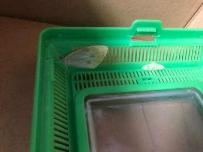 さなぎになった青虫くんがすがたをかえます。朝に教室に行くと,羽をかわかしているチョウがいました。あの青虫くんです。あの青虫くんはりっぱなモンシロチョウへとすがたをかえました。羽をかわかしたあと,大きく羽をパタパタとさせて,まどから出ていきました。