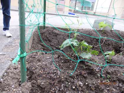 これは,くきが伸びやすいようにし,伸びたツルレイシを支えるためです。これからどんどん大きくなっていくのがとっても楽しみですね。つづけてみんなでかんさつしていきましょう!