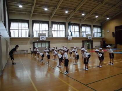 来週,新体力テストで立ち幅跳びをするので,練習をしました。子どもたちは「1,2の3〜!」!と腕を振りながら,できるだけ遠くまでジャンプをしました。着地は,膝を曲げることを意識して取り組むことができました。