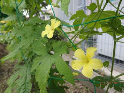 ツルレイシの観察を続け,約1カ月半が立ちました。大きく育ったツルレイシはついに,花を咲かせました。