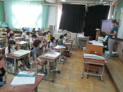 栄養教諭の小林先生と「何でも食べて,じょうぶな体」の学習をしました。