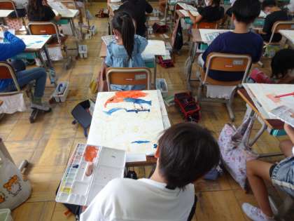 3年生では図画工作科において『お話を絵にするコンクール』に向けての作品作りを進めてきました。クラスで読んだ図書の中から,一人ひとりがここぞという場面をとり上げ,お話の中の世界を画用紙の中に表げんしました。